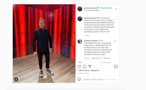 А сегодня в 20.20 премьера!!Смотрим вместе!! Липсинг батл", - сообщил телеведущий в подписи к посту. На опубликованном кадре, Юрий предстал в черной стильной футболке-рубашке и укороченных брюках. Поклонники были восхищены образом телеведущего, но больше всего обрадовались выходу выпуска нового шоу. "Это будет взрывное шоу", "Супер", "Очень жду", - писали в комментариях под постом. Отметим, что новое звездное развлекательное шоу «Липсинк Батл» появится на экранах украинцев 6 марта. По правилам шоу звездных пародий, в первых шести эпизодах каждую субботу будут выступать по шесть суперзвезд, которые будут поделены на пары. Каждую звездную пару связывает какая-то жизненная история соперничества, любви, дружбы. Зрители в зале своими аплодисментами определят - кто лучший в паре. Напомним, что Осадчая сняла Горбунова с подросшим сыном с неожиданного ракурса, оценили не все: "Зачем такое показывать?". Как сообщала Politeka, Горбунов специально засветил Катю Осадчую без макияжа, украинцы не сдерживают эмоций: "Посмеялись и поплакали" Также Politeka писала, что Юрия Горбунова и Осадчую при ребенке обложили матом во Львове: "Та пошел ты…"