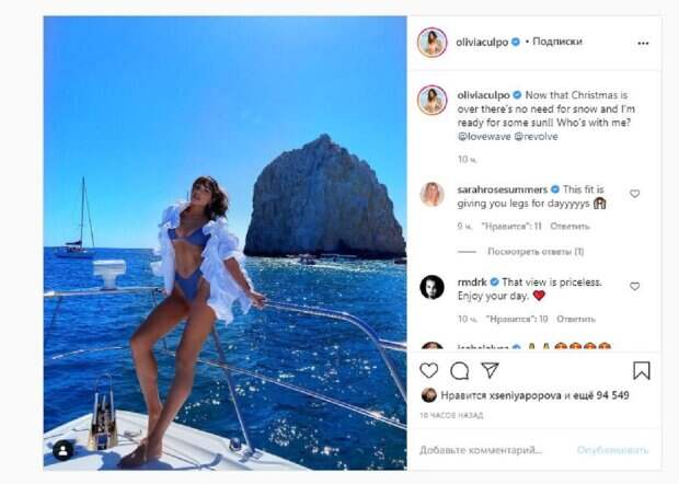 Известная модель Оливия Калпо, которая получила титулу "Мисс Вселенная", показала, как проводит время после Рождества На фото Оливия позирует в купальнике и белой накидке. Звезда соблазнительно выгнулась на яхте, показывая эффектную фигуру. Калпо согнула одну ножку и завлекала пикантным видом, благодаря чему снимок получился очень горячим.