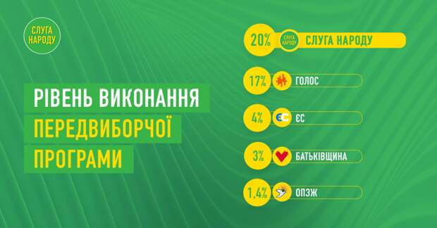 Коты кардинала не зря лакают свое молоко. Сегодня фракция «Слуга народа» похвасталась, что выполнила больше предвыборных обещаний, нежели другие члены парламента. Количество выполненного составило аж целых… 20%. «По данным аналитического портала «Слово и дело», в целом фракция «Слуги народа» выполнила 20% предвыборных обещаний, а именно 18 пунктов предвыборной программы.