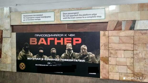На станции «Площадь 1905 года» в метро Екатеринбурга уберут рекламные баннеры ЧВК «Вагнер». Плакаты снимут сегодня ночью, сообщили «Новому Дню» в пресс-службе мэрии. Рекламные материалы на платформе метрополитена были размещены всего неделю назад.