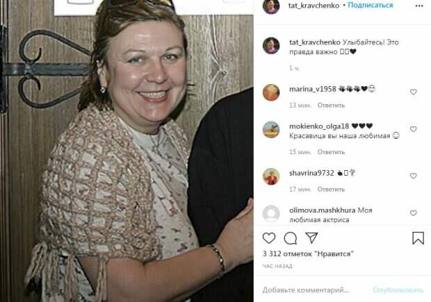 Более того, Татьяна Кравченко призывает к этому же своих поклонников. Но самое интересное, что звезда сериала "Сваты", видимо, специально, обрезала фотографию, чтобы не выдавать личность незнакомца. "Улыбайтесь! Это правда важно", - подписала звезда популярного сериала "Сваты" новое фото в своем микроблоге. Пользователи мгновенно отреагировали на публикацию и засыпали известную актрису лайками и восторженными комментариями. "Красавица вы наша любимая", "Моя любимая актриса", "Во всех Вы, Душечка, нарядах хороша!", "Улыбайтесь. Вам это идет. Столько энергетики", "Люблю вас", - написали фанаты под новым снимком Татьяны Кравченко. Ранее мы рассказывали, как Татьяна Кравченко с ярким макияжем произвела фурор в соцсетях. Зрителям близок образ простоватой женщин, которая, несмотря на свой местами вздорный характер, является прекрасной мамой и бабушкой. Поэтому, стоит только появиться новой фотографии на странице Татьяны Кравченко в сеоцсетях, как сотни фанатов не жалеют теплых слов на ее адрес. На этот раз звезда "Сватов" предстала с аккуратным макияжем, на шее у нее были крупные зеленые бусы, в ушах – небольшие серебряные сережки. Она смотрит в камеру, едва улыбаясь, но при этом ее взгляд наполнен теплотой и любовью. Напомним, что счастливая Татьяна Кравченко впечатлила внешностью в реальной жизни: фанаты Пугачевой оценили. Как сообщала Politeka, Татьяна Кравченко переполошила немощным видом, редкий кадр. Также Politeka писала, что Татьяна Кравченко сразила наповал элегантным образом: «Мадам, вы просто прелесть».