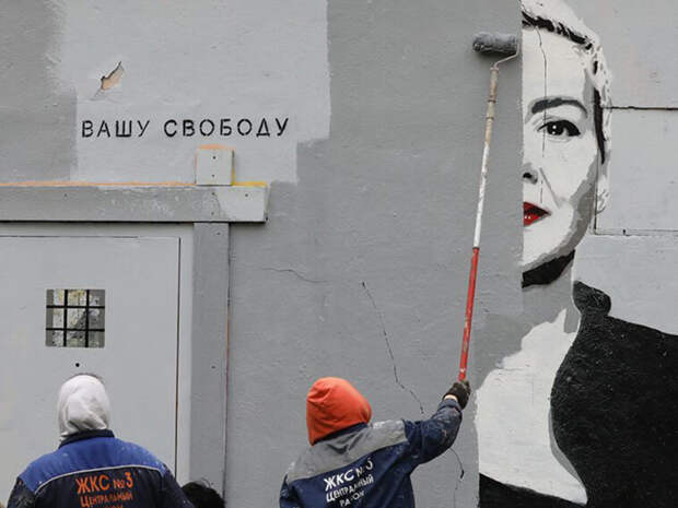 В Петербурге коммунальные службы, выполняя распоряжения властей, замазали краской граффити от 8 сентября, на котором была изображена Мария Колесникова, одна из ведущих участниц протестов в Белоруссии в прошлом году. Как напоминает «Медиазона», незадолго до этого суд в белорусской столице приговорил ее к 11-летнему сроку.