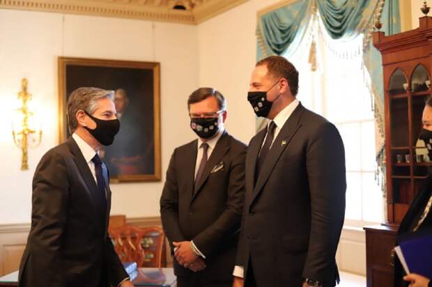 Министр иностранных дел Украины Дмитрий Кулеба и глава Офиса президента Андрей Ермак встретились с госсекретарем США Энтони Блинкеном в Вашингтоне. Во время переговоров политики обсудили ряд вопросов, главный из которых - подготовка к визиту президента Украины Владимира Зеленского в США, сообщает пресс-служба МИД.