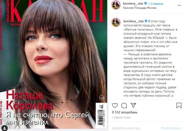 Какая прелесть! Сидя дома за чашкой чая, можно за пару минут вторгнуться в личные границы кого угодно. Зайти, не снимая грязной обуви. Плюнуть, крикнуть и гордо удалиться. Соцсеть — это, по сути, дом с открытыми настежь дверями», - говорится в сообщении. Королева также напомнила своим недоброжелателям, что культурные люди себя так вести не будут. «Культурный человек, придя в гости, не делает замечания хозяевам, верно? Это неприлично. Но в пространстве Интернета многие теряют человеческий облик......» - говорится в тексте сообщения. Уточним, что поклонники были удивлены такими словами знаменитости, хотя многие из них стали на ее сторону. «Это страшно – писать такое. Но я вас поддерживаю. Пусть у вас все будет хорошо», «Ну так не надо всем двери открывать. Нет странички в инсте- нет проблем», «изменил.....к сожалению! А теперь боится потерять. Жалко его....», – пишут они. Напомним, что Тарзан загремел в реанимацию после откровений об изменах Королевой А еще Politeka писала, что разъяренная Наташа Королева идет в атаку на Андрея Малахова после измен Тарзана Также Politeka сообщала, что Наташа Королева после измены Тарзана решилась на омоложение