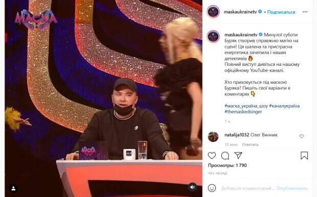В начале его выступления звездный детектив Настя Каменских решили, что под такую песню грех не станцевать. Она решила пригласить на танец своего коллегу – Андрея Данилко. «Танцевать! Бегом!», - произносит певица на видео, протягивая руку артисту. Однако Данилко категорически отказался от этого предложения. «Нет, не мой темп», - заявил он, замахав руками. В этот момент со своего места поднялась Полякова. Певица взяла Каменских за руку, после чего они вдвоем исполнили страстное танго на радость зрителям. Поклонники шоу тут же принялись обсуждать видео в комментариях. Многие при этом старались угадать, кто же скрывается под маской Буряка. Судя по всему, большинство зрителей считают, что в этом образе выступает музыкант Дмитрий Каднай. «Это Фагот», «Сексуально танцевали Оля Полякова и NK», «Каднай!», «Макс Барских», - пишут зрители в комментариях к публикации. Напомним, неизвестные фото молодого Андрея Данилко появились в Сети: "Наша Верка вернулась". Как сообщала Politeka, Данилко потроллил Винника на шоу «Маска», лишив его звания украинского Брэда Питта: кадры конфуза. Также Politeka писала, что скандалом обернулся новый эфир шоу "Маска", украинцы в ярости: "Вот и слили героя, а Данилко в плюсе! ".