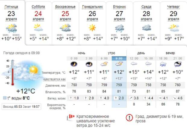 Температура воздуха днем продержится в пределах +14+15 градусов, вечером незначительно понизится +10+12 градусов. По Одесской области прогнозируется переменная облачность. Ночью и днем местами обещают небольшой дождь, а также грозу. Утром туман. Ветер южный, днем северо-западный – 9-14 метров в секунду. Во время грозы местами шквал 15-14 метров в секунду. Температура ночью 5-10 °С тепла, днем 12-17 °С. Ранее мы сообщали, одесситам можно будет забыть о ясной и теплой погоде на Пасху и майские праздники. В этом году самый главный православный праздник придется на 2 мая и соответственно совпадет с майскими праздниками. Однако жителям, по всей видимости, придется отказаться от пикников и прогулок на природе, так как в начале мая метеорологи прогнозируют месяц затяжных дождей, вплоть до 12 мая. Помимо дождей, в этом году традиционной майской жары ждать не стоит. Напомним, экологическая катастрофа в Затоке: в сети показали, что сбросили в воду Как Politeka писала, что Пасха и майские: одесситов ждет особый режим, детали запретов Также Politeka сообщала, много военной техники с автоматчиками замечено на улицах Одессы: кадры и что происходит