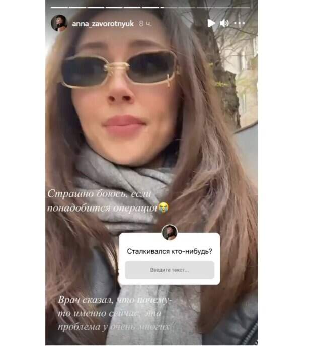 По словам наследницы звезды сериала «Моя прекрасная няня», левый глаз у нее покраснел, скорее всего, из-за аллергии, но капли и мази эффекта не дают. В настоящее время веко сильно распухло, девушке даже приходится надевать очки на улице. "Уже почти три недели так хожу, не представляю на сколько хватит терпения", - поделилась Анна. Дочь Заворотнюк боится хирургического вмешательства и советуется с подписчиками, что делать. "Страшно боюсь, если понадобится операция... Врач сказал, что почему-то именно сейчас эта проблема у очень многих", - сообщила девушка. "У моего ребенка был, тоже говорили, что надо будет удалять, но мы справились. Долго, правда, лечили, но помогла мазь и капли"; "У Ани Седоковой так же, недавно оперировали...", - пишут ей в комментариях. Напомним, Анастасия Заворотнюк более двух лет борется с онкологией. Ей диагностировали глиобластому. Это одна из самых агрессивных опухолей головного мозга. О своей страшной болезни актриса узнала спустя несколько месяцев после появления на свет третьего ребенка. Пройдя через несколько операций и реабилитацию, в настоящее время появилась информация, что актриса уже начала выходить на улицу, чтобы подышать свежим воздухом. Близкие ограждают ее от лишнего внимания со стороны журналистов, поэтому все эти года Анастасия хранит молчание, не разу не дав комментарий о своем состоянии. Напомним, сын онкобольной Заворотнюк опубликовал трогательное видео с подарком матери: "нет ничего невозможного" Как сообщала Politeka, дочь Заворотнюк не сдержалась и похвасталась квартирой в центре Москвы, съехала от больной раком мамы: "Я специально..." Также Politeka писала, что дочь Анастасии Заворотнюк впервые раскрыла всю правду о болезни мамы: "Не могу больше притворяться..."