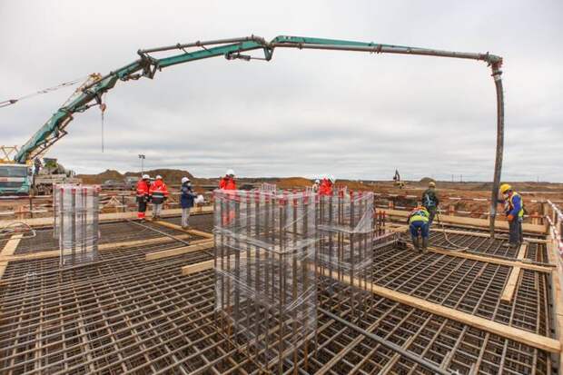 Строители начали работу над фундаментом Комплекса. Всего до конца текущего года планируется уложить еще около 7,5 тыс. куб. м. бетонной смеси. Залито уже почти 400 куб. м высокопрочного бетона залито в фундамент стотонного компрессора, который станет одной из наиболее технологически сложных частей установки по производству полиэтилена. Идут также фундаментные работы на месте этиленовой установки. Бетон заливается в основание первой из 14 печей пиролиза. Фундамент Комплекса возводится на забивных сваях, которые представляют собой железобетонные столбы длиной 12 метров. Расчет фундамента проводился с учетом долгосрочной эксплуатации крупногабаритного оборудования в условиях статических, динамических, ветровых, снеговых и других нагрузок. Строительные работы идут в непрерывном режиме с участием более двух тысяч специалистов, задействовано более тысячи единиц техники. На объект уже доставлено более 3 млн тонн различных грузов, в основном местного производства, в том числе — бетон, металлоконструкции и сваи. Проект реализуют АО «РусГазДобыча» и ПАО «Газпром» при поддержке госкорпорации «ВЭБ.РФ». Комплекс по переработке этансодержащего газа в Усть-Луге станет первым в Российской Федерации комплексом с полным циклом глубокой переработки углеводородов.