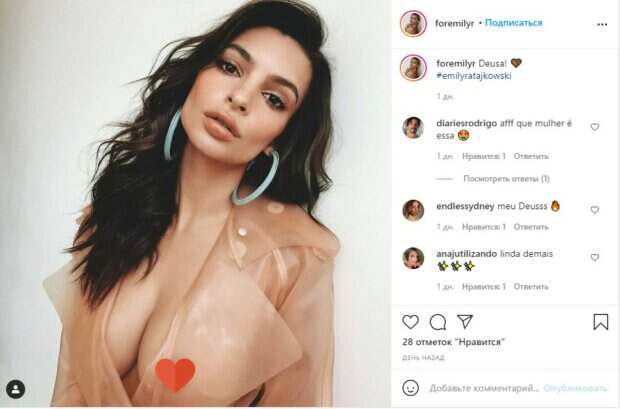 Впрочем, любит модель также и вспоминать, как выглядела на стильных фото и до беременности, а также того, как в целом изменилась ее фигура. Ратаковски часто в разделе Стори в Инстаграм показывает архивные кадры и удивляет образами. К примеру, довольно популярным снимком считается тот, на котором Эмили примеряла полностью прозрачный силиконовый плащ. Наряд не только не скрыл ее фигуру, но еще и подчеркнул достоинства во всей красе. Эмили позировала с нюдовым макияжем, простой укладкой и массивными бирюзовыми сережками-кольцами, завершающими ее лук. Ранее на фан-аккаунте появился кадр с Ратаковски, позирующей в максимально горячем образе. На фото Эмили позировала в кофте, которую решила задрать, показывая животик. Образ Ратаковски дополнила черными трусиками на ниточках, которые прикрыли самые пикантные места. "Это фото сделало мой день, хорошего вторника", "Классно выглядишь", "ты мой мир", "Ты моя любовь", "Вот какие персики", "у тебя красивые глаза, все больше напоминают вечер", "Я хочу твои персики", "Ты невероятно красивая, просто идеальный ангел", - отвечают поклонники. Напомним, Ратаковски без белья и стыда дала заглянуть себе под пиджак. А еще Politeka писала, что Эмили Ратаковски устроила шальной отдых на яхте в черном бикини. Также Politeka сообщала, что Эмили Ратаковски устроила жаркие шалости в модном мини-бикини