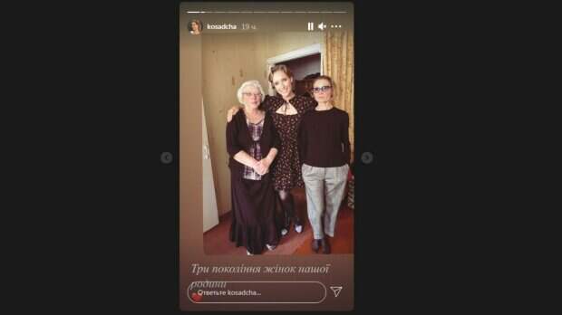 Ведь ясно, что из-за плотного графика съемок и желания охватить множество интересных мест, близким людям могут доставаться лишь минуты внимания. Но Катя Осадчая и такие моменты использует с толком. Доказательством этому служит Іnstagram знаменитости. Совсем недавно там появилась публикация посвященная маме Осадчей, женщина отмечала очередной день рождения. В Сториз же фанаты смогли увидеть редкое фото, на котором изображены сразу три поколения женщин семьи. Это мама и бабушка украинской журналистки и модели. При этом бабушка Кати Осадчей восхищает моложавостью и подтянутостью. Видно, что она умная и интересная женщина. На фото стоят три женщины, смотря на которых зритель сможет понять, в кого пошла красотой и энергетикой Катя. Знаменитость выше своих родственников и нежно обнимает их за плечи. Бабушка Осадчей стоит скрестив руки с лева, а мама с права от ведущей "Світського життя". Осадчая подписала архивное фото просто: "Три поколения женщин нашей семьи". Кадр получился очень трогательный и искренний. Судя по всему, сделан он был в доме бабушки, на ногах у неё видны тапочки. Та часть обстановки, которая видна на заднем плане, говорит о простоте и вкусе людей населяющих дом. Напомним, Осадчая с супругом "оторвалась" на закрытой вечеринке. Как сообщала Politeka, Настя Каменских призналась, что стала соседкой Осадчей. Также Politeka писала, Осадчая и Ефросинена появились в обществе в странном виде.