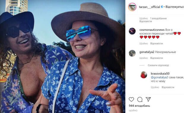 Выглядели они жизнерадостными и счастливыми. Тарзан расстегнул рубашку, засветив свои мышцы. Наташа Королева тоже немного расстегнула рубашечку, похваставшись зоной декольте. Правда, кожа Королевой после долгого пребывания на солнце сильно постарела. Да и на лице стали заметны сильные морщины. «Ночная жизнь – вперёд!», - подписал фото Тарзан, намекая, что они с женой весело проведут время. В комментариях паре оставили как комплименты, так и негативные отзывы. «Как на вас приятно смотреть, глаза горят у обоих))) Любоффф! Так держать», «Как всегда на высоте», «У вас классная пара. Будьте счастливы», «Какая красивая замечательная фотка», «Красавчики», «Наташа красотка», «Ненормальные», - пишут пользователи сети. Как известно, Тарзан с Королевой приняли участие в шоу «Племя», чтобы улучшить свои отношения после измен Сергея. Напомним, что раздетый Тарзан и Королева предались страсти "в огне", зажигательный кадр: "И пусть весь мир завидует". А еще Politeka писала, что Королева на жесткой диете поразила видом и испугалась, что Тарзан ее бросит: "Надо пять таких...". Также Politeka сообщала, что обиженная Наташа Королева ввязалась в громкий скандал с Пугачевой: "Выглядит просто безобразно".