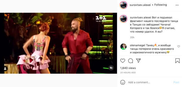 Так, на этот раз актер опубликовал новое видео на своей странице в Инстаграм. Как известно, на четвертом эфире шоу, тема которого была "Латинские танцы" покинула проект пара Алексея Суровцева с Машей Колосовой. В новой публикации он раскрыл, чего на самом деле боялся на шоу и показал фрагмент с последнего танца на паркете. "Вот и подъехал фрагмент нашего последнего танца в Танцах со звёздами! Чачача! Которого я так боялся
