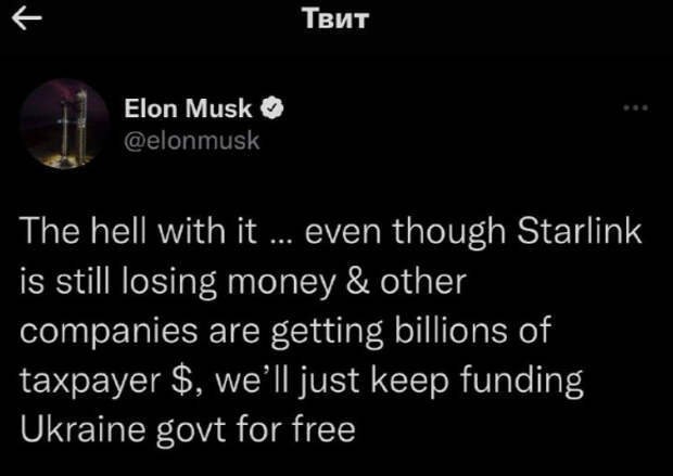 Американский бизнесмен, глава SpaceX Илон Маск в своем Twitter (запрещен в РФ) написал, что его спутниковая компания Starlink будет бесплатно работать для нужд Украины. Решение это выглядит неожиданным. Ранее предприниматель заявлял, что больше не в состоянии оплачивать обслуживание Starlink на территории Украины.