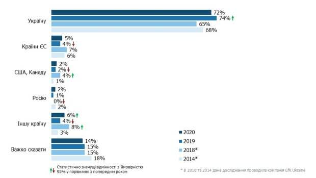 Стало известно, сколько украинцев предпочли родиться в Украине, если бы у них был выбор Данные опроса, который проводится каждый месяц, предоставила компания Info Sapiens. Так, согласно опубликованным данным, 72% украинцев, не променяли бы родину на какую-то другую страну. Стоит отметить, что страны Евросоюза выбрали лишь 5% респондентов, а РФ - лишь 2%.