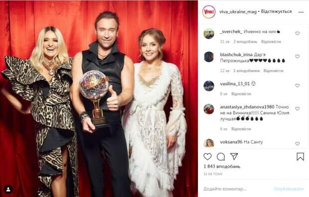 Неожиданное фото с Олегом Винником и его партнершей по шоу «Танці з зірками» всколыхнуло сеть Как сообщает Politeka.net, кадр появился в Instagram. На снимке запечатлены Олег Винник, Алена Шоптенко и Наталья Могилевская. При этом именно певец держит кубок, который должен достаться победителю шоу. «Судя по тому, в чьих руках кубок «Танцев со звездами», победитель уже практически известен