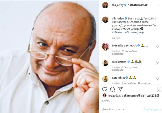 Всего за полчаса ее пост получил огромный отклик. Его оценили более 30 тысяч человек. И еще почти 2 тысячи поклонников высказали слова сочувствия. «Царствия Небесного», «Да что ж такое то...Господи...что за год», «Очень печально», «Очень жаль. Соболезную. Большая утрата», «Скорбим, Какой ужас», «Боже мой, неужели!!! Какая ужасная новость... Светлая память навсегда», - пишут пользователи сети. Как известно, 6 ноября на 87-м году жизни скончался российский писатель-сатирик Михаил Жванецкий. На данный момент не разглашаются причины смерти артиста. Лишь в прошлом месяце Жванецкий окончательно ушел со сцены, решив прекратить выступления из-за почтительного возраста. Михаил Жванецкий родом из Одессы. Он стал известным благодаря знакомству с Аркадием Райкиным, который предложил ему должность в Ленинградском театре миниатюр. Тогда и началась его карьера. Напомним, что ушел из жизни легендарный Михаил Жванецкий: первые подробности трагедии. Как сообщала Politeka, печальная весть о Михаиле Жванецком, пришло время прощаться: "На 87 году жизни...". Также Politeka писала, что с Михаилом Жванецким попрощались навсегда: «Старого портфельчика жаль».