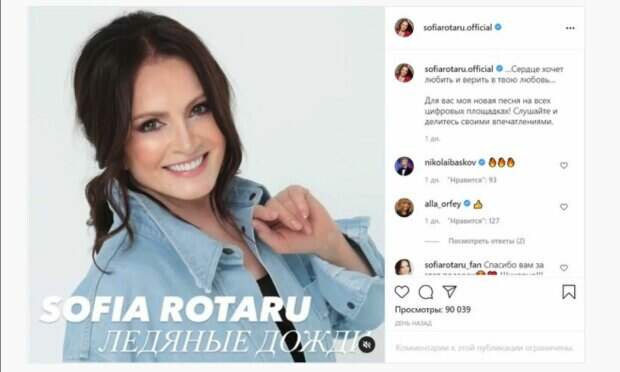 В посте звезда поразила не только молодым видом, но и чарующим голосом. "…Сердце хочет любить и верить в твою любовь...", - написала артистка. Украинская легенда сумела привлечь внимание звезд шоу-бизнеса, в том числе Николая Баскова и Аллы Пугачевой. Последняя поставила смайлик в виде большого пальца вверх. В общем пост собрал более 100 тысяч просмотров. Отметим, что СМИ пишут, что соперничество между Пугачевой и Ротару началось много лет назад. Всему виной стали разные характеры звезд - первую назвали хулиганкой, а вторую - скромницей. София Ротару получила признание публики раньше, ее уже отмечали наградами, в то время пока Пугачева только пробивала себе путь. СМИ назвали разные причины много летнего конфликта, в частности когда Ротару снялась в фильме "Душа" вместо Пугачевой. Примечательно, что обе певицы никогда не позволяли говорить плохо о друг друге публично. Ранее Politeka писала, что единственный сын Софии Ротару показал счастливую певицу в белом платье и с цветами Напомним, что София Ротару прилетит на концерт ко Дню Независимости Украины из российского Сочи A еще Politeka сообщала, что единственная внучка Софии Ротару показала свои VIP-развлечения с женихом-миллионером