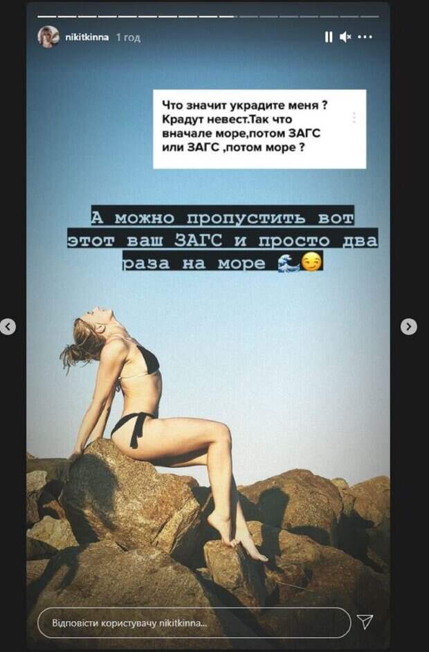 Об этом пишет Politeka.net со ссылкой на страничку знаменитости. "Что значит украдите меня? Крадут невест. Так что вначале море, потом ЗАГС... Или ЗАГС, а потом море?", - написал фанат. "А можно пропустить вот этот ваш ЗАГС и просто два раза на море", - написала в ответ Екатерина. Фанаты не ставили лайки и не писали комментарии, но обычно звезду засыпают комплиментами: "Это точно бум", "Вау", "На это можно смотреть вечно", "Некультурно к своим подписчикам поворачиваться этой самой, хотя и красиво. Да". Мы писали, что актриса студии "Квартал 95" Екатерина Никитина устроила фотосессию на природе показала, как любит Украину. Девушка устроила фотосессию в поле среди подсолнухов. Она надела обтягивающие шорты и короткий розовый топ, который подчеркнул ее бюст. Звезда "Женского квартала" позирует рядом с цветами и лучезарно улыбается, демонстрируя свое прекрасное настроение. Напомним, подопечная Елены Кравец устроила горячие танцы у шеста, в "Женском квартале" такое не покажут А еще Politeka писала, что эффектная блондинка из "Квартал 95" схватилась за шест, исполняя мечту фанатов Также Politeka сообщала, что блондинка из "Квартал 95" засветилась без косметики и показала довольный оскал