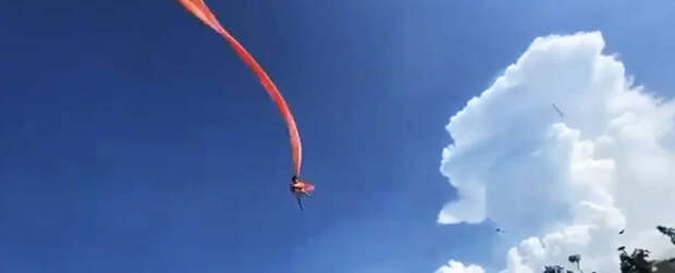 Девочка пробыла в небе полминуты, летая как комета. После того, как ветер стих, ребенок начал падать. Его словили зрители.Отмечается, что девочка не пострадала.