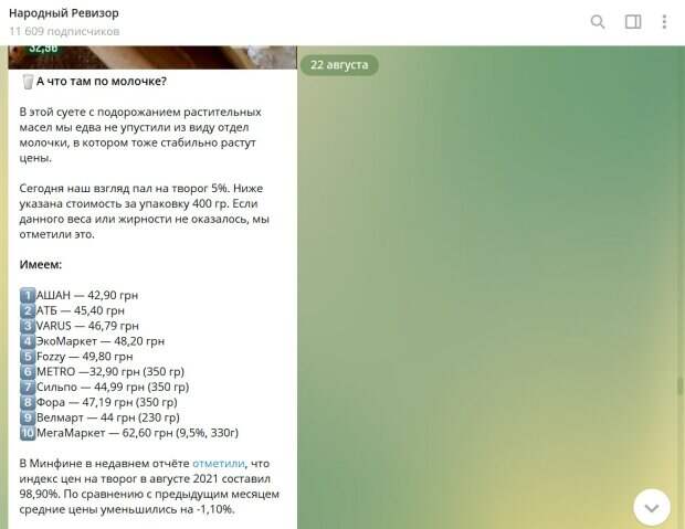 Цены на молочные продукты в Украине резко вырастут Информация о подорожании появилась в сообществе «Народный Ревизор» в Телеграмме. «А что там по молочке? В этой суете с подорожанием растительных масел мы едва не упустили из виду отдел молочки, в котором тоже стабильно растут цены. Сегодня наш взгляд пал на творог 5%.