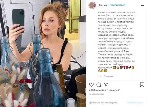 Украинская певица Тина Кароль в домашнем виде перед съемками превзошла себя В этот раз артистка в естественном виде в гримерке покорила фанатов своей естественной красотой. Дело в том, что внешний вид певицы многих поклонников мотивирует вести здоровый образ жизни и ухаживать за собой, также, как и артистка.