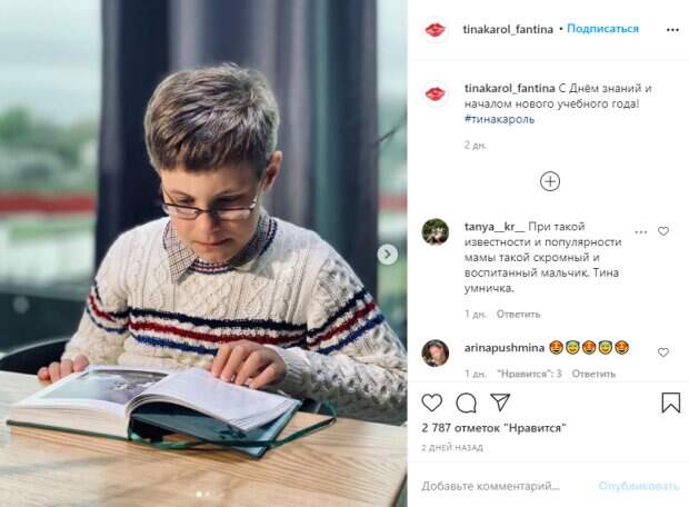 Пользователи в основном поздравили Веню с началом учебного года, пожелав ему удачи: "Лапочка. Удачи ему. Пусть этот учебный год принесёт много побед и радости" "Фу зубрила я таких не люблю в мене навіть таких друзів нема" "При такой известности и популярности мамы такой скромный и воспитанный мальчик. Тина умничка" "С началом учебного года, Вениамин! Пусть этот год будет лёгок, удачным и