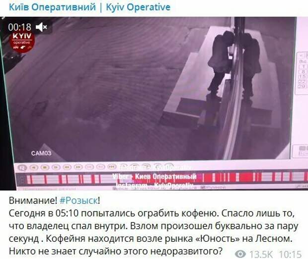 Чтобы посмотреть видео - перейдите по ссылке. Кроме того мы писали, что в Киеве неизвестный пытался ограбить кафе, однако ему это не удалось из-за того, что внутри ночевал владелец заведения. Так, в столице возле рынка "Юность" неизвестный рано утром пробрался в заведение питания, но увидел внутри его владельца, поэтому быстро скрылся с места. "Внимание! Розыск! Сегодня в 05:10 попытались ограбить кофейню. Спасло лишь то, что владелец спал внутри. Взлом произошел буквально за пару секунд. Кофейня находится возле рынка "Юность" на Лесном. Никто не знает случайно этого недоразвитого?"- говорится в сообщении. Напомним, карантин по-новому с 9 ноября: в Кабмине объявили о важных изменениях и где остановится транспорт. Ранее Politeka писала, что карантин по новым правилам, в Минздраве готовятся ввести строгие ограничения: для лиц старше 60 лет...". Также Politeka сообщала, что карантин выходного дня вводят в Украине, что будет с транспортом и магазинами.
