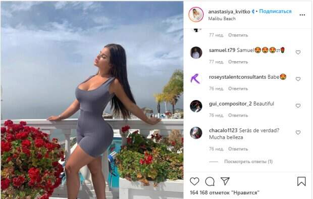 При этом в сети есть фото девушки с подросткового возраста и домашние фото без фотошопа, на которых у нее отнюдь не шестой размер бюста и совсем не такие пышные бедра. Также девушку часто критикуют за чрезмерное использование фотошопа и нежелание худеть. При низком росте она весит более семидесяти кг, однако это все еще прибавляет ей популярности. В Инстаграм Квитко публикует лишь белфи (современное название откровенным фото с изображением ягодиц). На одном из фото Квитко в темно-сером костюме показала размеры бюста, талии и бедер. Обтягивающая ткань подчеркнула все достоинства модели и показала тем самым, как выглядит Настя в спортивном и скромном костюме с минималистичным дизайном. «Они стали еще больше