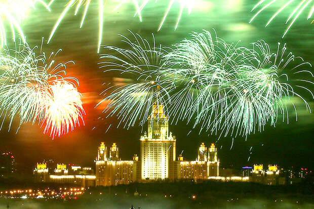 Празднование Дня Победы в Москве традиционно завершается салютом. В этом году в течение 10 минут более 70 самоходных пусковых установок должны выпустить свыше 11 тысяч фейерверочных изделий