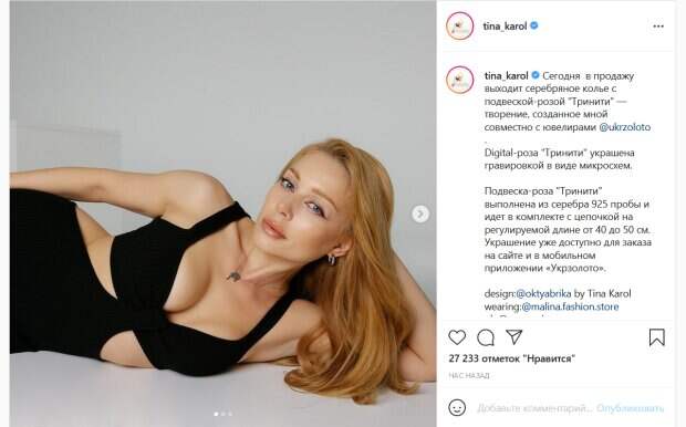Популярная украинская певица Тина Кароль привлекла внимание поклонников, показав фигуру в платье с экстремальными вырезами Как сообщает Politeka.net, артистка порадовала фанатов новым постом на своей странице в Инстаграм. В публикации Кароль рассказала о выходе новой подвески, дизайн которой разработала она сама в сотрудничестве с известным ювелирным брендом.