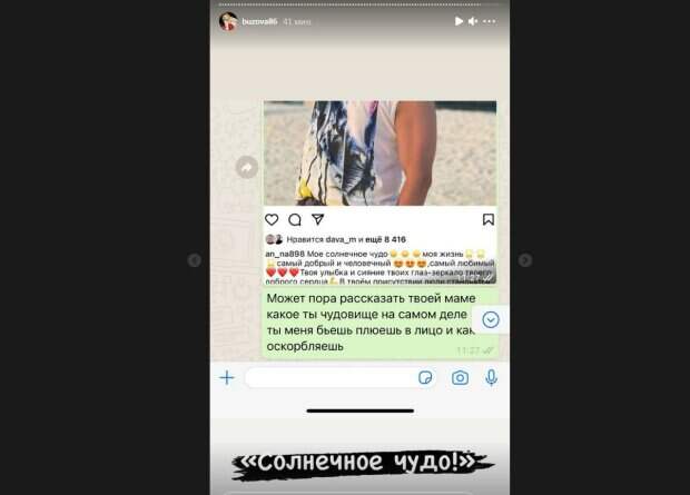 Певица заявила, что экс-бойфренд бил ее и унижал. "Может пора рассказать твоей маме, какое ты чудовище...", - написала Бузова. Также Бузова показала скрины переписки с Манукяном, которая похоже была сделана во время отдыха пары на Мальдивах, и очень далека от той идиллии, которую показывали Оля и Давид на своих страничках в соцсетях. Бузова записала и видеообращение. «А еще я не знаю, я делаю правильно или нет. Да, и так бывает. Я его заблокировала. И если вы меня любите, вы тоже это сделаете. Мне ху*во. Я могу ошибаться. Простите меня все. Но вот сейчас так», - говорит заплаканная певица. Напомним, 35-летняя Бузова устроила бесстыжие пляски в ультра-мини и поплатилась: "Даже трусы видно" Как сообщала Politeka, именинница Бузова напугала изменениями во внешности рядом с красоткой-сестрой: "Лицо расплющило" Также Politeka писала, что располневшая Бузова с новой прической показала, как выглядит после Мальдив: "Меня это бесит"
