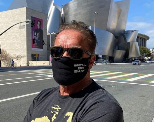 Вот вам мотивация на неделю!" – отметил Шварценеггер. [video width="640" height="640" mp4="https://vesti.ua/wp-content/uploads/2020/09/shvarts.mp4"][/video] Кроме того, "железный Арни" наладил бизнес по торговле именными черными лицевыми масками против коронавируса (на фото): маска с коронной фразой Терминатора стоит всего 12,99 долларов США. Причем Шварценеггер не получит ни цента с прибыли - по его словам, весь доход пойдет на поддержку преподавателей школы All-Stars, которую актер основал в 1992 году.Школа сейчас закрыта в связи с карантином, а на вырученные деньги будут закуплены продукты для семей преподавателей. Кстати, Арнольд Шварценеггер снимется в шпионском сериале, где станет одним из главных героев. Он также выступит исполнительным продюсером сериала. Это при том, что ранее Шварценеггер всерьез задумался о том, чтобы завершить кинематографическую карьеру. К этой мысли актера подтолкнул кассовый провал фильма "Терминатор: Темные судьбы".