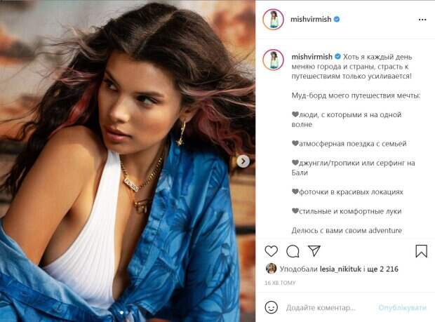 «Хоть я каждый день меняю города и страны, страсть к путешествиям только усиливается! Муд-борд моего путешествия мечты: люди, с которыми я на одной волне, атмосферная поездка с семьей, джунгли/тропики или серфинг на Бали, фоточки в красивых локациях, стильные и комфортные луки», - написала она. После снимков Андраде не устояла даже ее коллега. Александры Зарицкая из группы KAZKA. «Это отвал всего», - написала она. Что уж говорить поклонниках артистки. «Очень красиво