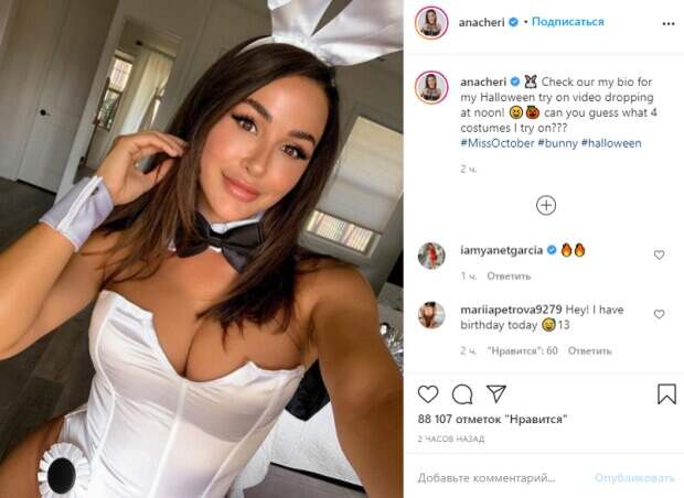 Американская фитнес-модель Ана Чери решила неожиданно сменить имидж и появилась в костюме зайчика Модель является популярной фитнес-красоткой, которая прославилась благодаря своим фото в Инстаграм. Так как Ана сделала акцент на своем теле и том, как получить идеальные формы при помощи занятий в спортзале, она часто рассказывает о своем рационе, буднях и занятиях дома.