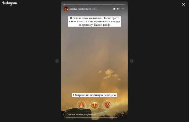 Теперь похудевшая Могилевская решила показать место, где проводит отдых. Как оказалось, певица решила не уезжать из Украины и нашла здесь свое райское местечко. "Я сейчас тоже отдыхаю. Посмотрите, какая красота и не нужно ехать никуда за границу. Какой кайф!", - написала звезда. Даже небольшой дождь не помешал артистке ощутить себя счастливой. Позже певица получила обратную реакцию своих подписчиков и поделилась мыслями в другом сторис. "Узнала, как много людей отдыхает в Украине. Сегодня будет пост для тех, кто хочет отдохнуть за границей", - поделилась певица. Отметим, Наталья Могилевская поспорила о том, что похудеет со звездным тренером Анитой Луценко. Последняя заявила, что также хочет сбросить лишние шесть килограмм. Луценко обещала прыгнуть с парашютом, если проиграет пари. К слову, чтобы похудеть, Могилевская обращалась к диетологу. Напомним, что Могилевская после похудения сверкнула экстра-декольте А еще Politeka писала, что похудевшая Могилевская показала себя вблизи. Также Politeka сообщала, что спор худеющей Могилевской с Анитой Луценко принял неожиданный оборот