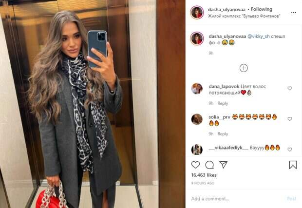 Красотка утеплилась черно-белым шейным платком с леопардовым узором, а в руки взяла красную сумчку с ручками-цепями. Образ модели довершила роскошные вьющиеся волосы. "Специально для вас", - написала она в посте. Пользователи соцсети в комментариях оценили внешность Даши, многие заметили, что она сменила прическу: "У, как всегда красотка прекрасотка. Прям красотулька"; "Что - то на себя стали не похожи