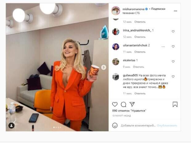 Девушка также ведет активно социальные сети, где частенько публикует провокационные снимки. Этот раз не стал исключением, ведь Миша Романова была в пиджаке и штанах на голое тело, не надев даже бюстгальтер, позируя в гримерке. "1,2,3 или 4?", - написала Миша, предлагая выбрать лучшее фото. Фанаты сразу кинулись засыпать девушку комплиментами: "Мишенька, все", "Великолепно", "Да там уверенная 4-рка" "Очень идет цвет", "У меня утюг такой же дома", ""Улыбочка", "На всех фото, мечта любого идиота, прекрасна и днем прекрасна и ночью,я даже не вру, все знают точно...". Мы писали, что экс-участница "ВИА Гры" и близкая подруга поп-певца Макса Барских, Миша Романова показала соблазнительный образ, забыв надеть бюстгальтер. Так, на новом фото красотка попозировала перед зеркалом в облегающей блузке красного цвета и узких джинсах, которые обтянули прелести экс-участницы "ВИА Гры". Напомним, эффектная подруга Макса Барских в дерзком мини устроила пожар на сцене А еще Politeka сообщала, что экс-ВИА Гра Романова забыла про Барских, растаяв в объятиях известного красавца Также Politeka писала, что пышногрудая подруга Макса Барских без белья позволила заглянуть под пиджак