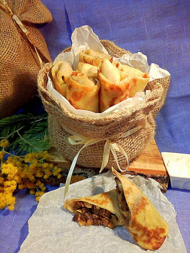 Ингредиенты блинчики: тёплое молоко — 250 мл. теплая газированная вода — 250 мл. мука — 100 гр. крахмал — 60 гр. сахар — 1 ст.л. сода пищевая — щепотка соль — щепотка яйца — 4 шт. подсолнечное масло — 3 ст.л. начинка: лук репчатый -1 шт. грибы сушеные — подосиновики 7-8 шт. масло сливочное — […] The post Нежные, тонкие блинчики с начинкой из лесных грибов с луком.