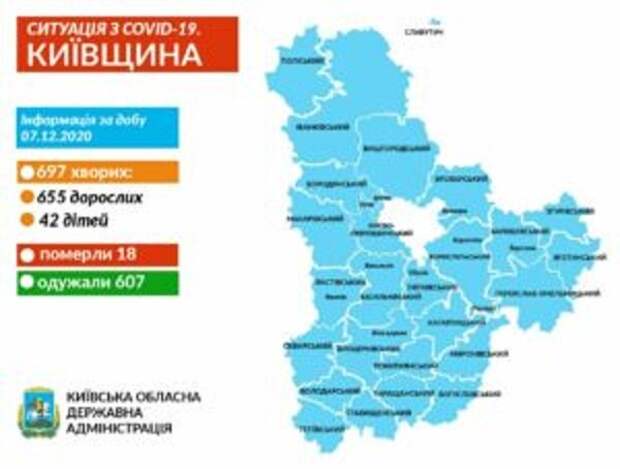 За минувшие сутки, 7 декабря, в Киевской области было подтверждено 697 новых случаев заражения китайским вирусом Об этом сообщает Politeka со ссылкой на пресс-службу Киевской ОГА. Так, в целом по состоянию на 8 декабря в Киевской области подтверждено 44 552 случая заболевания. Новые случаи COVID-19 установлены у 42 детей в возрасте от 3 месяцев до 17 лет.
