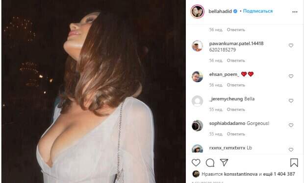 Белла в Инстаграм публикует только лучшие свои кадры. Хадид показывает, как проходят ее фотосессии, делится превью-кадрами с последних рекламных съемок, блистает дома в простых образах с сестрой или на ранчо, которое так любит посещать. Девушка на одном из фото показала также себя с необычного ракурса и засветила при этом бюст во всей красе. Белла в тоненьком белом платье выпятила его перед объективом и специально отклонилась назад, не постеснявшись: «Приятно; какая девочка-клубничка