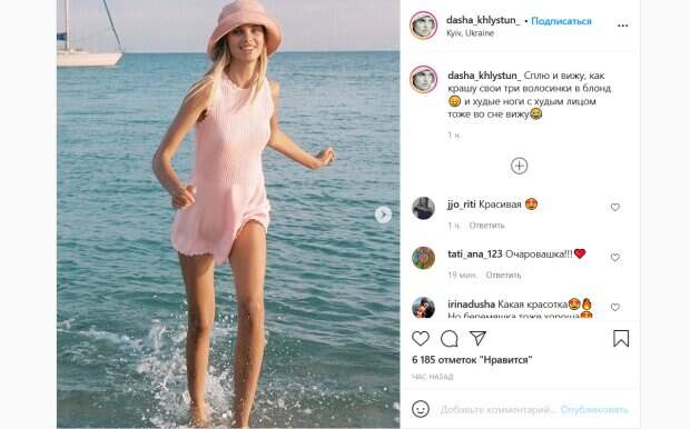 «Сплю и вижу, как крашу свои три волосинки в блонд. И худые ноги с худым лицом тоже во сне вижу», - откровенно написала модель. Свой пост она дополнила собственным архивными снимками. По словам Хлистун, они были сделаны в 2019 году. На фото довольная модель позирует на море. Она зашла в воду в коротеньком розовом платье и панаме ему в тон. Ее волосы в тот период как раз были покрашены в блонд. Выглядела красотка действительно очень худой. Подписчики Хлистун поспешили успокоить девушку в комментариях. «Даша, все будет», «Вы в любом весе прекрасны», «Вот родишь, ещё больше похудеешь! Так что наслаждайся этим моментом!», «Немного терпения и всё вернётся!», «Мне кажется лучше с тёмными», «Блондинка огонь, очень красивая», - пишут люди. Как известно, вскоре после финала шоу «Холостяк-10» его главный герой расстался с победительницей Дашей Ульяновой и начал встречаться с 25-летней моделью Дашей Хлистун. Недавно пара объявила о том, что ждет ребенка. Кроме того, они признались, что уже успели тайно сыграть свадьбу. Напомним, беременная жена "Холостяка" Михайлюка блеснула животиком и раскрыла свой секрет: "Имя малышки...". Как сообщала Politeka, "холостяк" Макс Михайлюк публично отчитал беременную возлюбленную: "Застегнись". Также Politeka писала, что "холостяк" Михайлюк засветил квартиру, в которой теперь живет с беременной моделью: "Ох, даже не знаю".