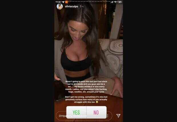 В этот раз в стори ее Инстаграм появились видео. Оливия сидела в одном из заведений с друзьями и любимым питомцем. Модель надела топик со смелым декольте, из которого выставился пышный бюст с кончиками светлого белья - эффектная леди. Оператор поднес камеру слишком близко к прелестям звезды, засняв их во всей красе. Позже красотка показала, что под пальто на ее коленях сидит ее любимая собачка. В посте Калпо рассказала, что ощущает боль в груди, связанную с менструальным циклом. Красотка попросила поделиться с ней, кто еще ощущает такое, как она. Кадры не собрали много лайков и комментариев в открытом доступе, ведь в сторис нет такой возможности. Напомним, Оливия Калпо попала в фэшн-индустрию, когда была студенткой Бостонского университета. В 2010 году девушка подписала договор о сотрудничестве с Maggie Inc. Спустя года она впервые стала участницей конкурса красоты. После победы в одном из конкурсов, Оливия стала участницей «Мисс США». Красотка привлекла внимание жюри и общественности не только своими идеальным формами, но и высказываниями в защиту транссексуалов. Напомним, «Мисс Вселенная» Оливия Калпо заставила любоваться собой, подобрав самый жаркий ракурс А еще Politeka сообщала, что "Мисс вселенная" Оливия Калпо в жаркой позе на столе показала, что у нее под юбкой Также Politeka писала, что "Мисс Вселенная" Оливия Калпо засветила свои сочные "дыньки", задрав мини-топ прямо на улице