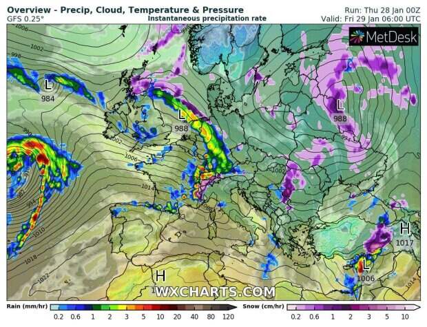 Ближайшей ночью также циклон еще будет влиять на погоду центральной части и Юга, будут идти снег и мокрый снег. А вот завтра днем в южной части Украины и в большинстве центральных областей ситуация стабилизируется, осадки послабнуть и прекратятся", - отметила авторитетный синоптик в своем Facebook. По прогнозам Натальи Диденко, осадки днем возможны на Харьковщине, в под вечер снег и дождь доберутся до Донецкой и Луганской областей. Уже ночью украинцев почувствуют морозы, которые пришли вместе с циклоном: температура будет колебаться до -9, а в ночь на субботу похолодание усилится. На крайнем Юге днем до +6, а в других регионах - от -3 до +2 градусов. "В Киеве завтра периодически будет снежить, во второй половине дня снег ослабеет и прекратится. На дорогах гололедица, внимательно с дистанциями! Ближайшей ночью уже в столице морозец, -5-7 градусов, завтра днем ожидается 0-2 градуса мороза. Погода остается непростой...",- резюмировала Диденко в своем микроблоге. Ранее мы сообщали, что сильный снегопад так засыпал трассу Киев-Одесса, что по ней не может двигаться спецтехника. Осадки начались еще 27 января и не прекращаются до сих пор. В результате непогоды остановились грузовики, а из-за них и другой транспорт. Напомнить, Погода обрушит весь гнев на украинцев, мокрый снег парализует полстраны Как сообщала Politeka, Циклон с дождями и снегопадами ворвется в Украину, срочное предупреждение Также Politeka писала, что Новое похолодание обрушится на Украину, синоптики раскрыли опасные даты