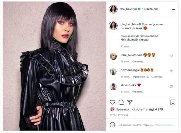 Санина также активно ведет Инстаграм, где делится с фанатами самым интересным. На новых фото Юлия показалась в кожаном платье. Девушка была с черными распущенными волосами, позируя у стены. Образ получился очень эффектным. "Платьица тоже бывают разные", - написала Юлия под фото. Фанаты поставили почти 5 тысяч лайков и написали комментарии: "Офигенная", "Красивая", "Яркий образ", "Воу-воу", "Ты в этом образе как из сериала "Американская история ужасов", "Лучшая кошечка", "Шикарно, готично-вампирское платьишко. Классный мейк", "Ты должна быть прекрасной женой дьявола, ты прекрасна". Напомним, Санина и ее муж из The Hardkiss показали, как выглядели 10 лет назад на собственной свадьбе А еще Politeka писала, что Санина из The Hardkiss удивила внешностью в новом образе Также Politeka сообщала, что Санина из The Hardkiss вместе с мужем-красавцем озадачила украинцев