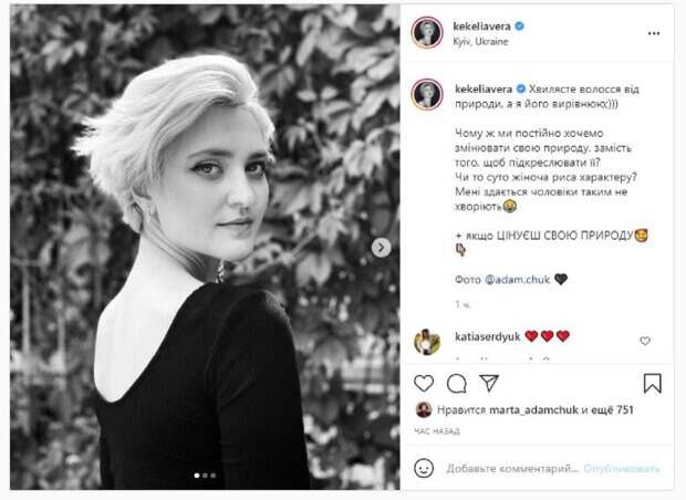 Девушка решила в новом посте Инстаграм решила признаться, какая внешность у нее на самом деле: "Волнистые волосы от природы, а я его выравниваю;))) Почему же мы постоянно хотим менять свою природу, вместо того, чтобы подчеркивать ее? То чисто женская черта характера? Мне кажется мужчины таким не болеют. +, если ценишь свою природу". На фото Вера была в кофточке с открытой частично спиной. Девушка развернулась спиной, показывая свои волосы во всей красе. Фанаты поставили более 700 лайков и написали комментарии: "Верочка, хочется Вас не только лицезреть, но и слышать Ваш прекрасный голос за который я Вас полюбила, как например это делает Джамала, сегодня наслаждались ее вокалом в Инстаграм, привет из Харькова!!!", "Первое предложение я уже где-то слышала", "100%. До лет 22 постоянно красилась (мейк), а потом как-то само по себе перестала наносить тонну косметики, и натуральность стала для меня нормой, наверное выросла". Напомним, блондинка из «Женского квартала» после разговора с беременной Осадчей публично обратилась к мужу А еще Politeka сообщала, что звезда "Женского квартала" восхитила жену Кошевого, засветив свои самые сладкие объятия Также Politeka писала, что звезда "Женского квартала", показав кадры из роддома, объявила о радостном событии
