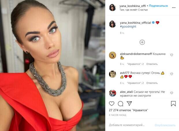 После увиденного декольте им вряд ли удалось спокойно уснуть, поскольку шикарная грудь Яны так и пытались выпрыгнуть с тесного платья. В комментариях под ее постом начались настоящие баталии. Многим такой образ девушки показался слишком откровенным, но были и "защитники" бюста Яны. "Зачем так грудь оголять??) И так все красиво!", "Дал же Бог человеку такие красивые глаза", "Совсем исхудала", "Да уж, глаза у тебя просто прелесть", "Эти глаза напротив", "И как теперь уснуть?", "УГарика что ли?", - писали под постом актрисы. Напомним, Харламову недавно приписали роман с Яной Кошкиной. Телеведущую якобы видели в компании юмориста на одном из официальных мероприятий. Тотчас же пошли слухи о предстоящей свадьбе. Асмус в шутку подтвердила информацию, заявив, что она будет подружкой невесты на дне заключения брака ее бывшего мужа и его новой пассии. Кошкина в своем Инстаграме решила прокомментировать сложившееся положение вещей. Она заявила, что ей зря приписывают роман с Харламовым. Напомним, что пышногрудая «невеста Харламова» распахнула свою гордость и показала необычный дар: "Ты с другой планеты?". А еще Politeka писала, что фигуристая "невеста Харламова" в спальне показала свою пышную красоту: "Я развелся из-за тебя". Также Politeka сообщала, что опьяненная любовью подруга Харламова выставила своих внушительных "близняшек": "Боже, это перебор!".