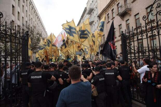 В День Независимости Украины ветераны российско-украинской войны, в частности полка "Азов", пришли к Офису Президента с требованием принять закон о коллаборантах Представители "Азова" подчеркнули, что в этот праздник важно не только почтить украинскую армию, но вспомнить, что главная угроза для Украины в эти дни – "это внутренняя "пятая колонна", которая работает за деньги Кремля".