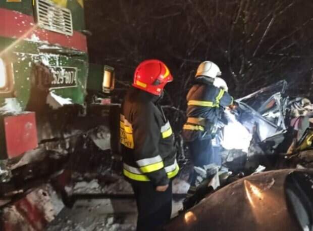 По данным пресс-службы ГСЧС, сообщение о ЧП поступило на линию "101" в 23.32. На железнодорожном переезде в селе Угринов Ивано-Франковского района поезд протаранил легковое авто, в котором находилось два человека. Последние, 29-летний мужчина и 36-летняя женщина, погибли на месте. Чтобы освободить тела из расплющенной поездом машины, спасателям пришлось задействовать комбинированный гидроинструмент.