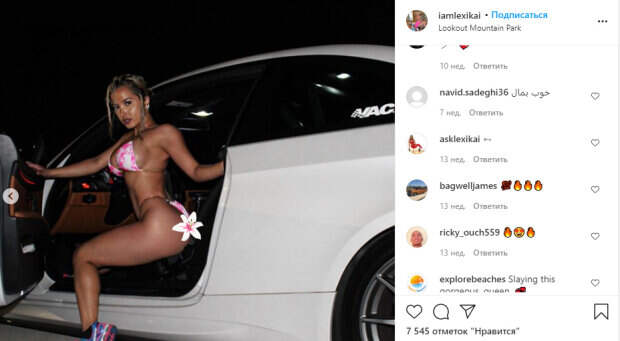 Лекси часто записывает видео тренировок дома, на природе и даже во время подъема по лестнице. Поэтому все ее фото отличаются между собой. В этот раз она показала достоинства в бело-розовом бикини с силиконовыми лямками и не забыла при этом посветить и своими ягодицами, и бюстом. Яркое фото Лекси, которая повернулась боком к камере и отставила достоинства поближе к объективу, не оставило фанатов равнодушными: «Люблю это