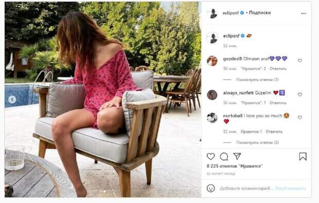 На новом фото красотка показалась в интересной пляжной тунике. Девушка присняла наряд с плеча, добавляя искринки кадру. Как можно увидеть, Нур позировала за столиком на летней площадке у бассейна. Фанаты сразу начали писать комментарии и ставить лайки, засыпав красотку комплиментами: "Я так сильно тебя люблю", "я так сильно тебя люблю", "На тебя так красиво смотреть и не насытиться, как всегда НУР", "Моя любовь номер один", "Моя принцесса", "Ангел", "нет на земле более удивительной женщины, чем ты! спасибо за то, что делали мой каждый день красивым". Напомним, звезда из "Великолепного века" показала себя без макияжа и с открытым декольте А еще Politeka сообщала, что звезда "Великолепного века" напросилась на комплименты, блеснув формами в боди Также Politeka писала, что звезда "Великолепного века" восхитила видом в платье с открытым верхом